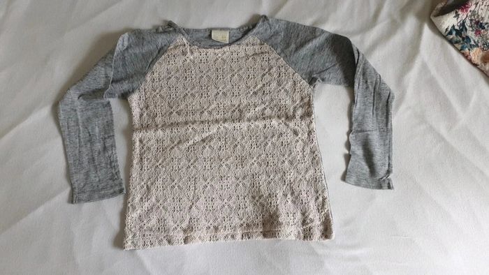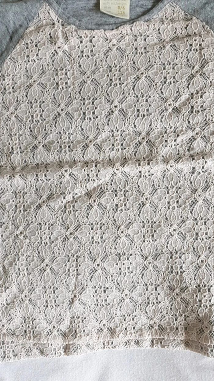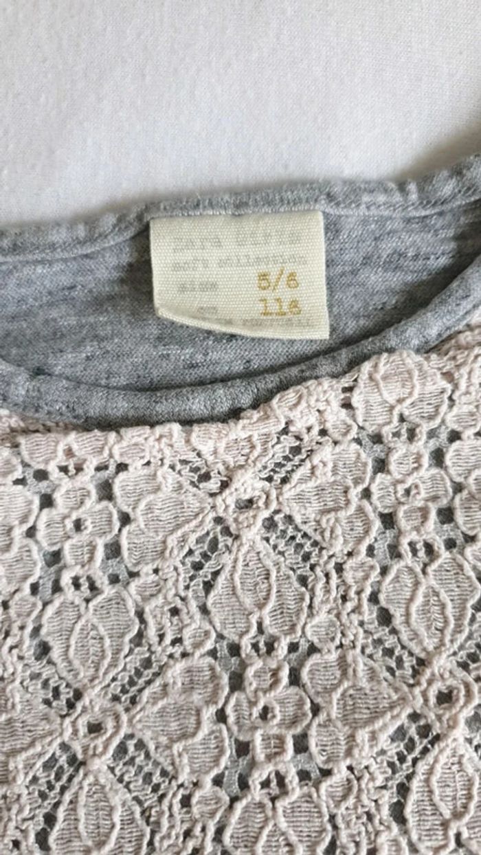 T-shirt Zara gris et dentelle 5,6 ans