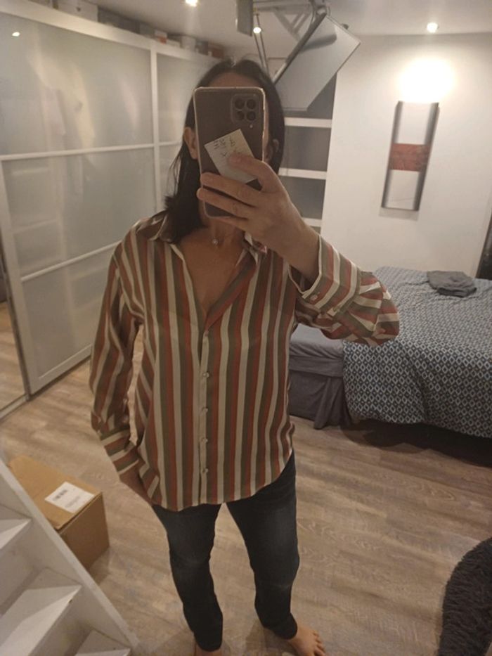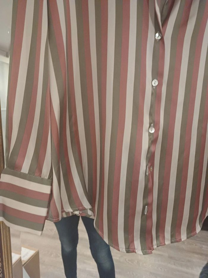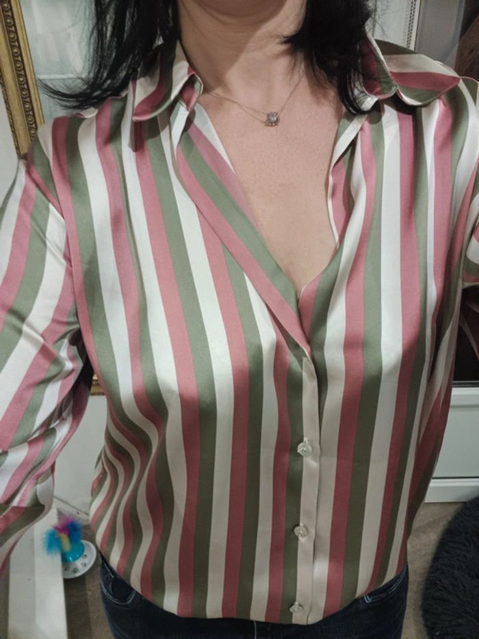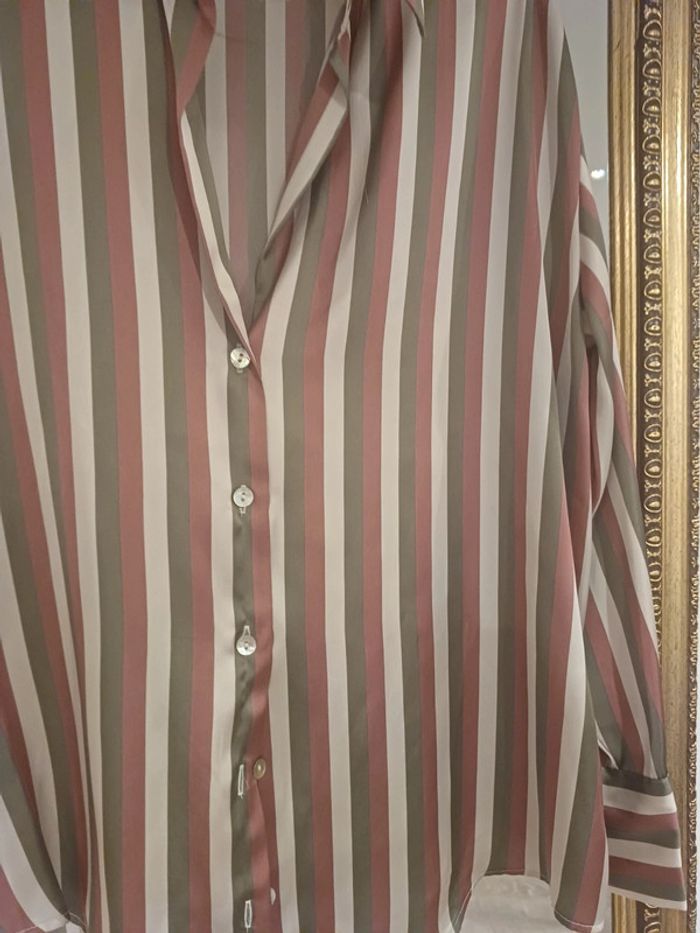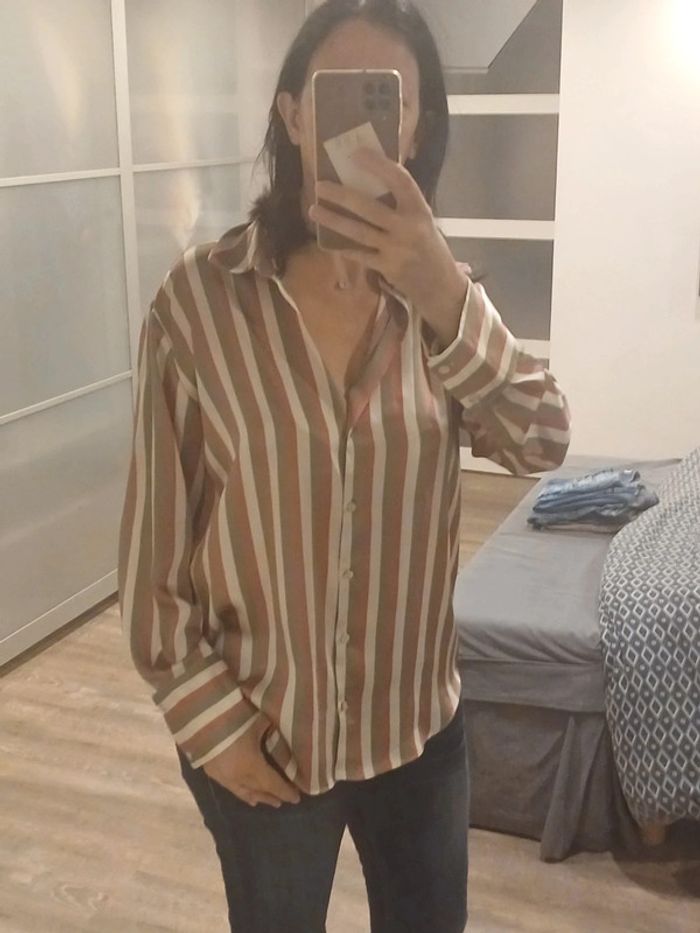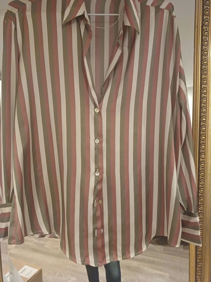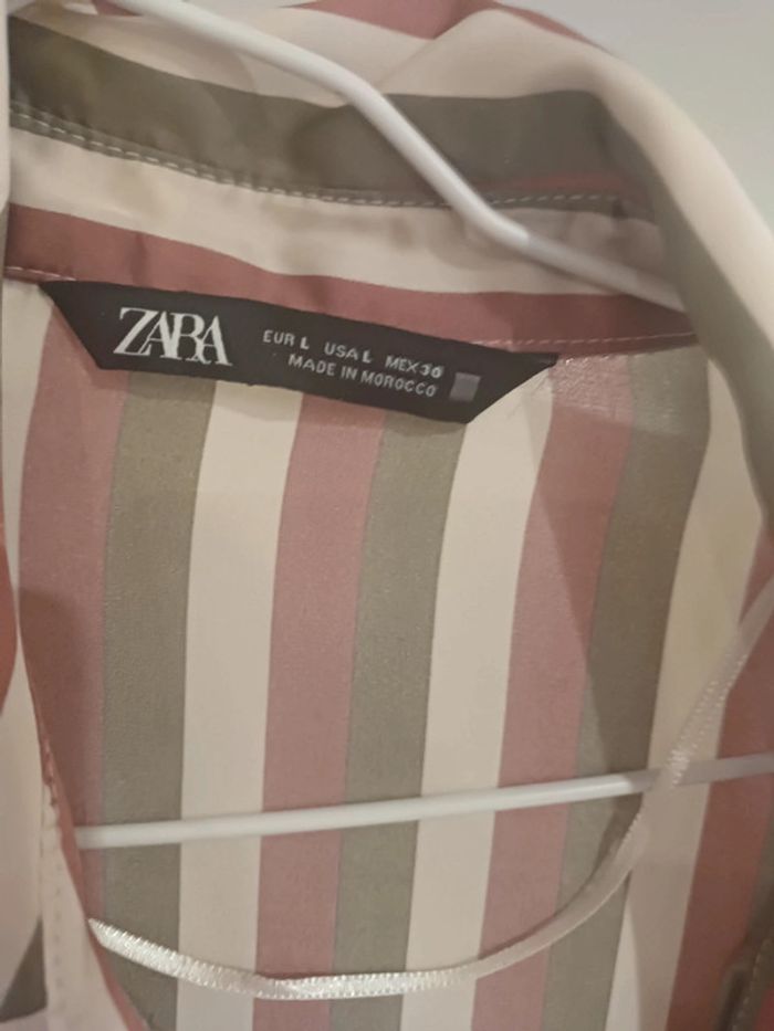 Belle blouse zara fluide, tbe, taille L, à rayures kaki, rose fuschia et creme #femmeL_mondressing11_bv