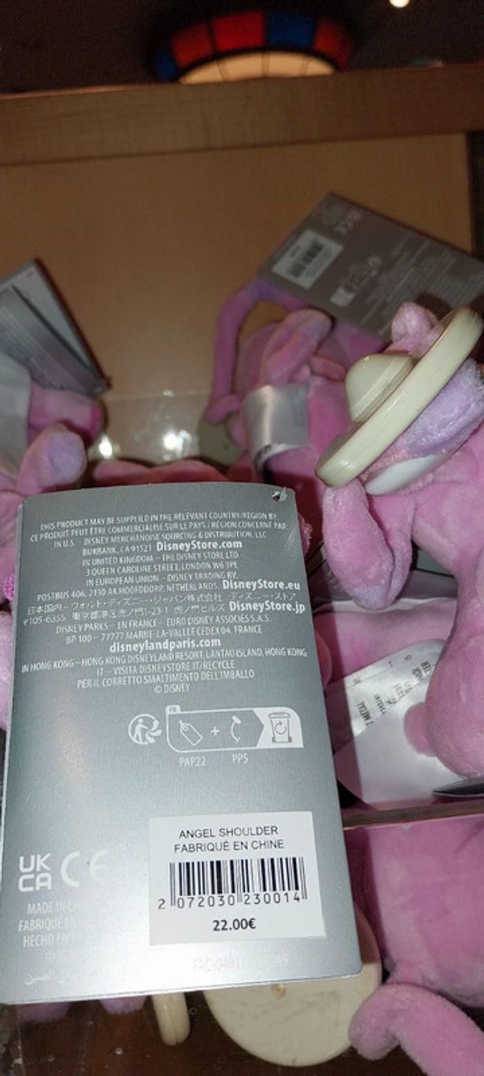 Pick-Up pour la peluche de Angel en version shoulder, qui tient sur l'épaule Tiré de Lilo et Stitch Neuve avec étiquette de prix d'origine Venant de Disneyland Paris