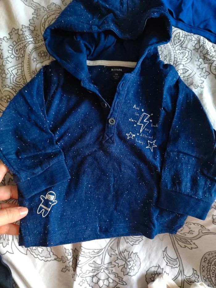Comprend : - 1 Tee-shirt manches longues (sergent major) - 1 Tee-shirt manches longues snoopy - 2 tee-shirts manches longues dont 1 avec capuche (kiabi)