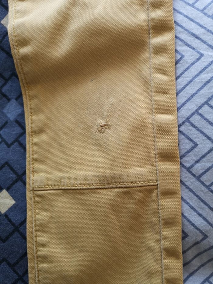 Troué au niveau du tibia gauche et un peu griffé niveau genoux droit.
