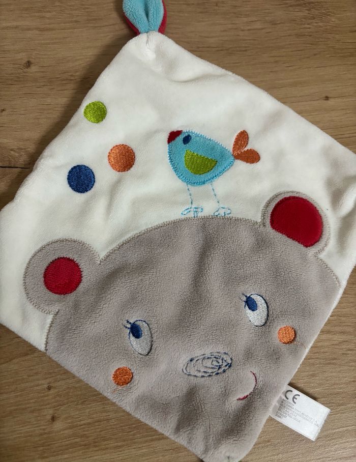 Doudou plat ours gris oiseau bleu nicotoy simba toys - photo numéro 1