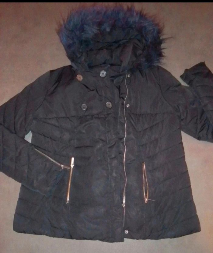 Taille 42 capuche avec fausse fourrure en bon état .capuche avec des petits reflets Violet