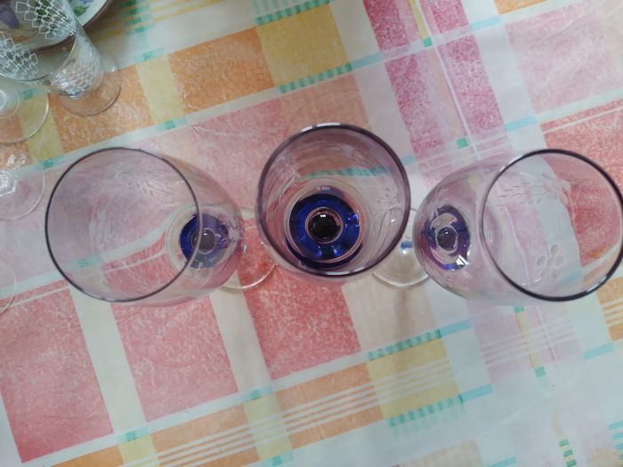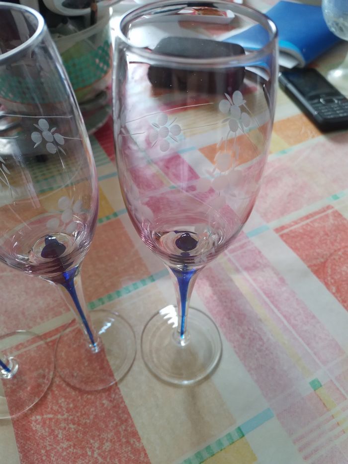 3 flûtes a champagne bleu a fleurs. En bon état. Envoie rapide et bien emballer