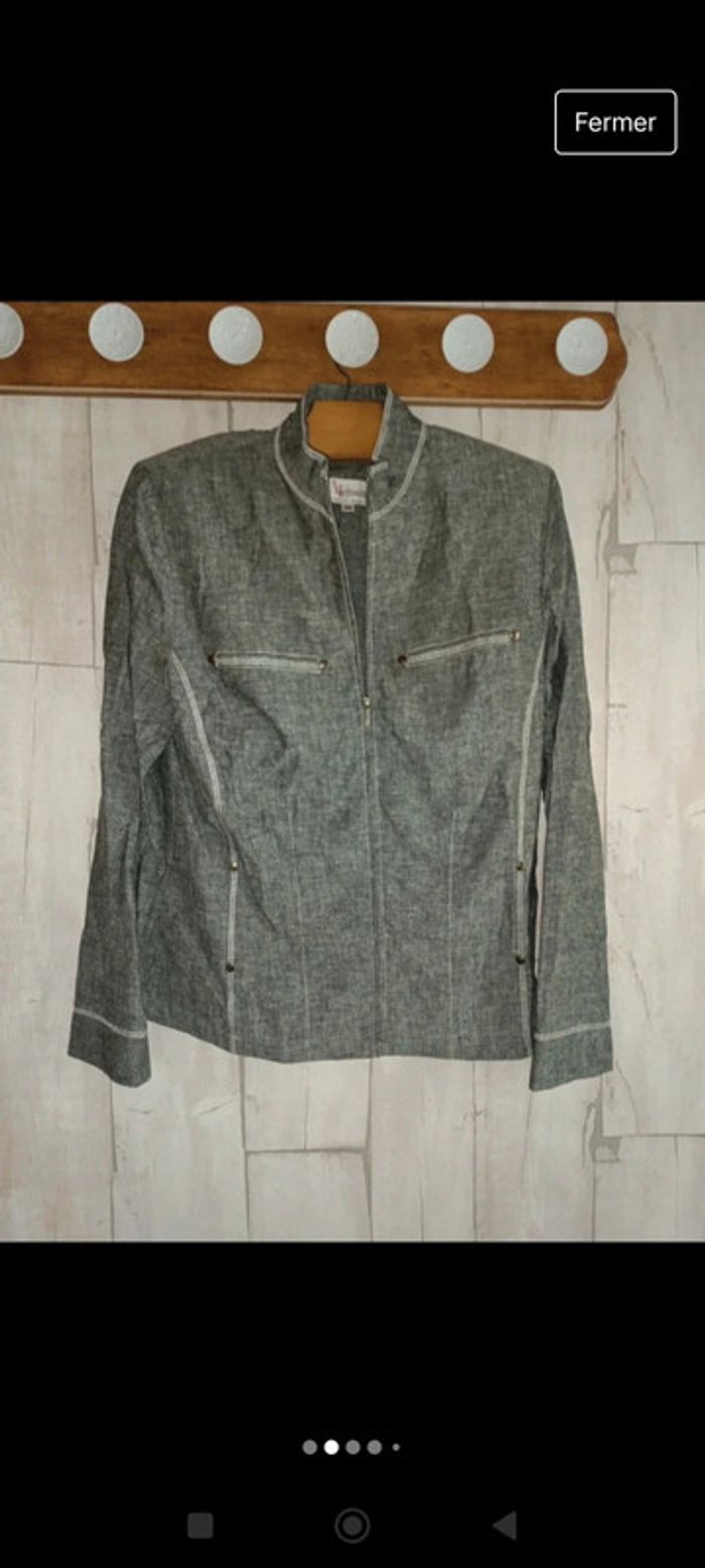 Veste en lin zippée grise légère - photo numéro 1