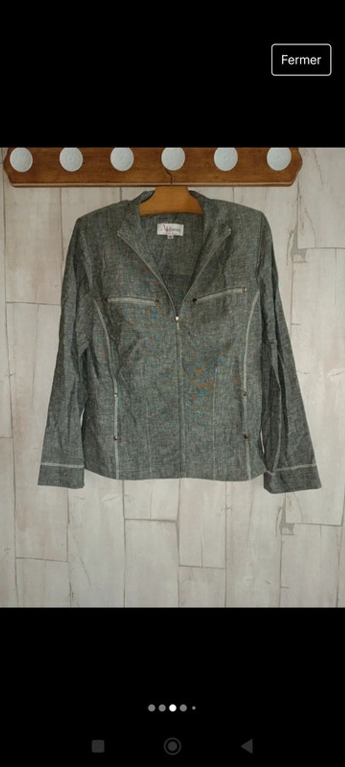Veste en lin zippée grise légère - photo numéro 2