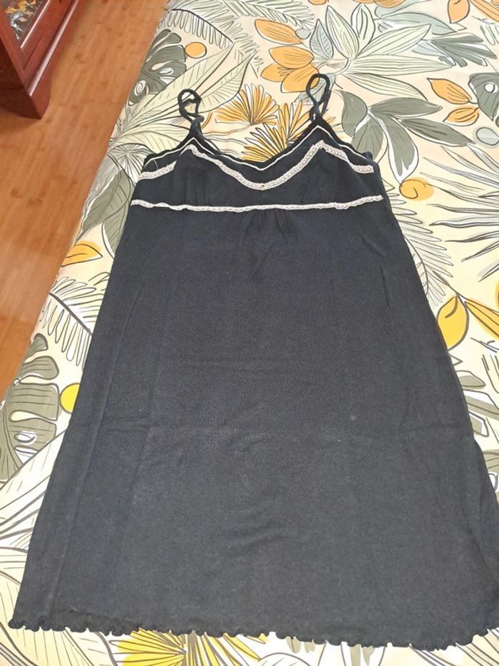 Jolie chemise de nuit noire à bretelle 50 % coton 50 % modal