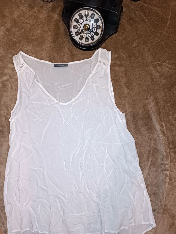 En excellent état, à juste besoin d'un coup de fer à repasser. Blanc uni, fluide et agréable à porter Taille 38