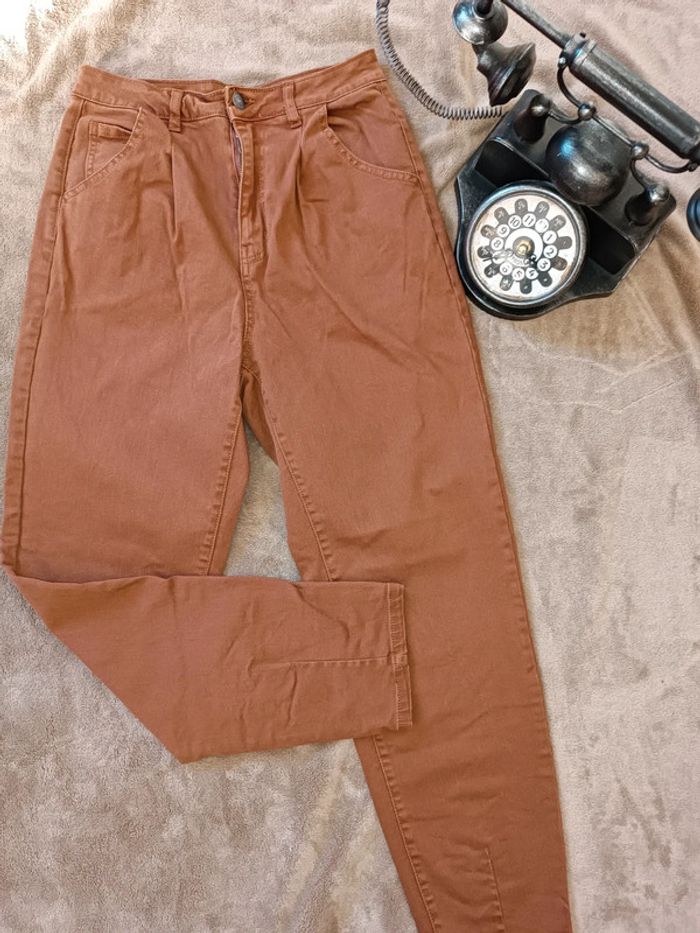 Jean marron taille haute avec jambes larges Kiabi XS peu porté