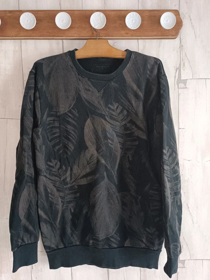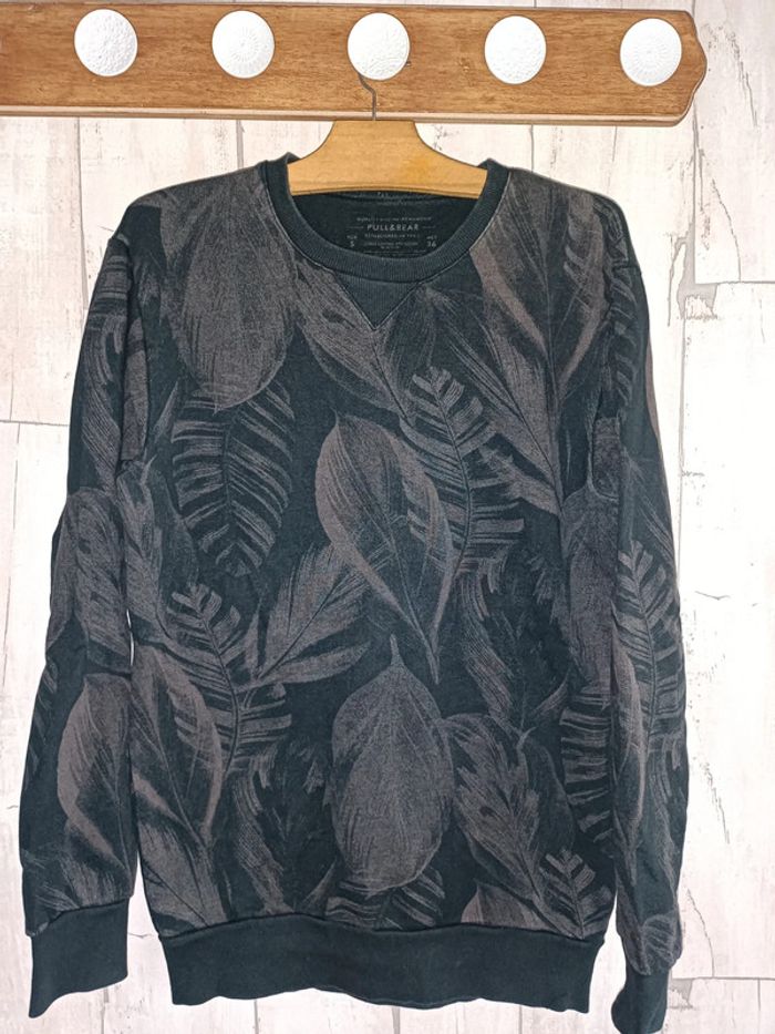 Pull d'hiver oversize noir avec motifs marrons/gris de chez Pull & Bear en taille S. Peu porté