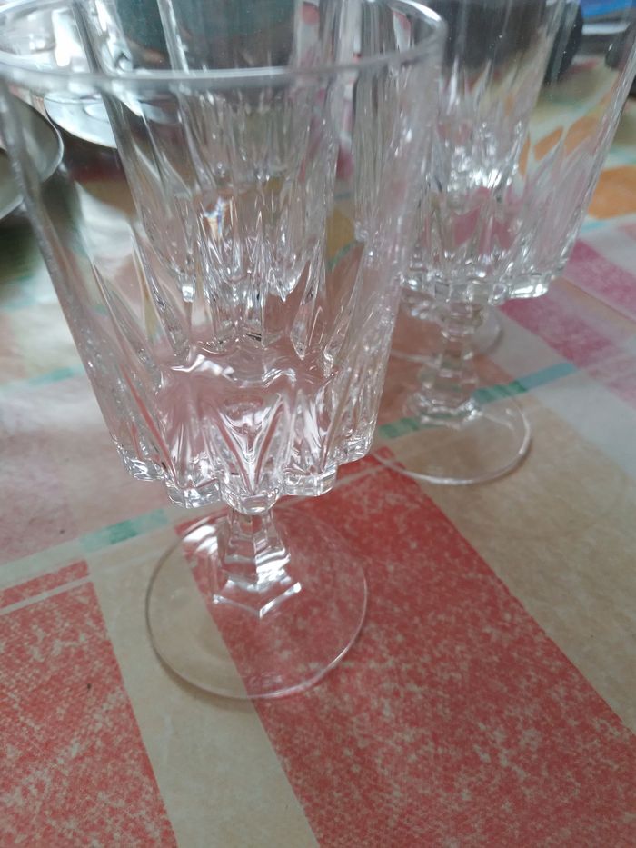 5 verres a pied en cristal. Sur 2 verres il y a une petite trace. Envoie rapide et bien emballer.