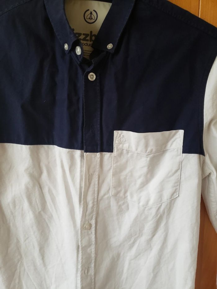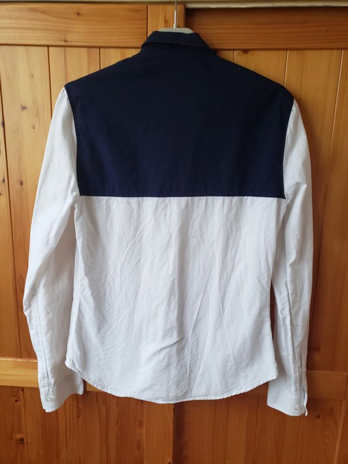 Manches longues. Boutonnière devant. Petite poche, finition bateau. Plus d étiquette matière mais c est en coton. Couleur bleue marine et blanche Mesure aisselle à aisselle : 45 cm Longueur : 65 cm #sissimimi9134