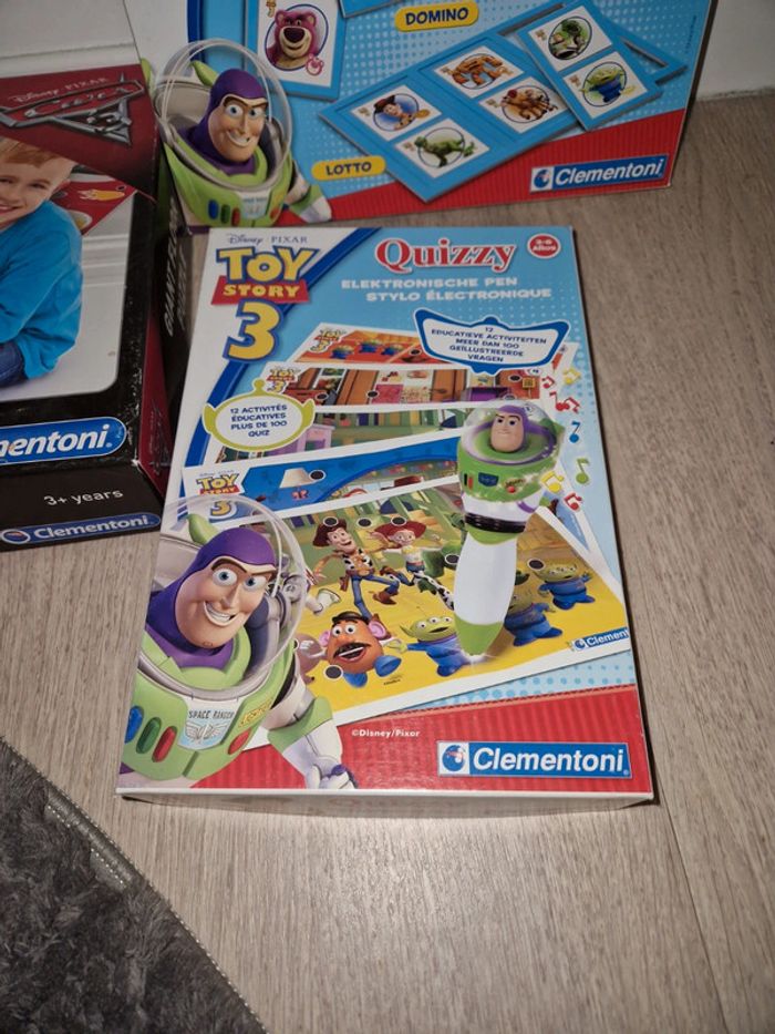 Lot de jeux électroniques #garçon #clementony #des3ans Toystory 3 quizzy Toystory 3 memo, domino, loto 3 en 1 Puzzle géant cars Les piles des stylo sont a changé !!! Le tout en tres bon etat général sauf la boite du puzzle cars qui présente des signe d'usures extérieur #tatche62700jouets