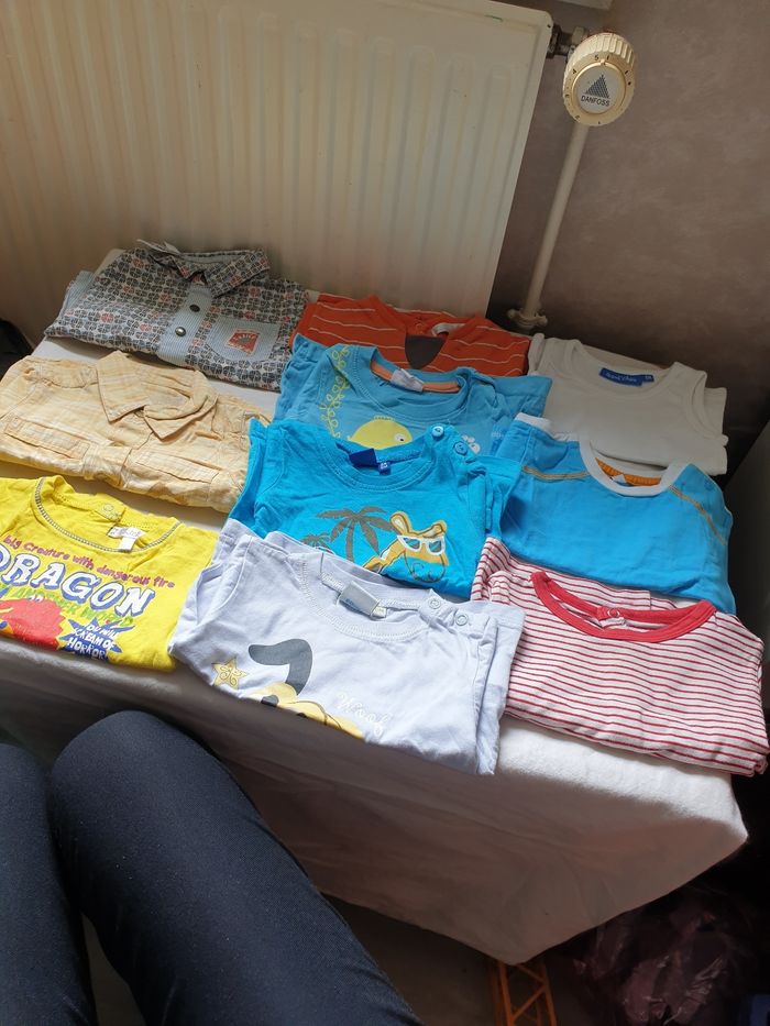 Haut 6mois 2 sans manche (bout'chou et kitchoun) 1 haut ml berlingot 1 chemise ml orchestra 1 chemise mc orchestra 5 tee shirt ( Disney, sans marque, pommette, kitchoun, baby cute) Certain en très bonne etat, d'autre bonne etat. Vous pouvez voir le détail des articles sur mon dressing