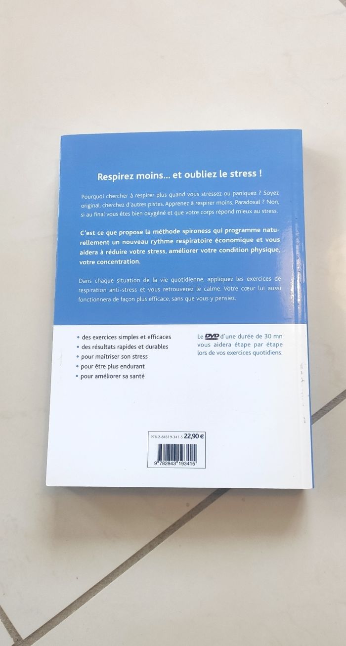 Pourquoi chercher à respirer plus quand vous stressez ou paniquez ? Soyez original, cherchez d'autres pistes. Apprenez à respirer moins. Paradoxal ? Non, si au final vous êtes bien oxygéné et que votre corps répond mieux au stress. C'est ce que propose la méthode spironess qui programme naturellement un nouveau rythme respiratoire économique et vous aidera à réduire votre stress, améliorer votre condition physique, votre concentration. Dans chaque situation de la vie quotidienne, appliquez les exercices de respiration anti-stress et vous retrouverez le calme. Votre coeur lui aussi fonctionnera de façon plus efficace, sans que vous y pensiez. Des exercices simples et efficaces, des résultats rapides et durables pour maîtriser son stress, pour être plus endurant, pour améliorer sa santé. Le DVD d'une durée de 30 mn vous aidera étape par étape lors de vos exercices quotidiens.