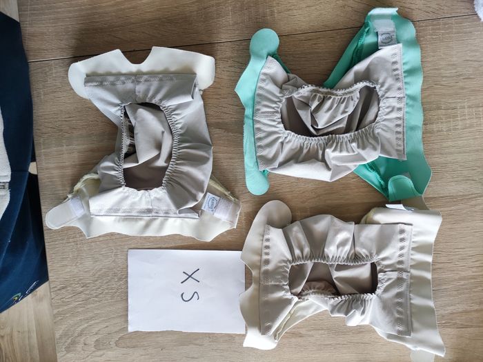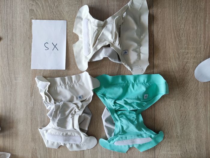 Vend lot couches lavables et inserts marque Hamac *13 insert taille 1: 78€ (6€ l'unité) 12 microfibres et 1 coton Très bon état, zéro tâche * 4 couches taille XS: 54€ (18€ l'unité) Ont servi à un seul bébé pendant 2 semaines seulement. Scratch, élastiques et nacelles RAS La jaune est légerement boulochee CF photo *4 couches taille S : 61€ -Bleu et marron : 12€ la couche Nacelle habimée(possibilité de les faire changer pour 9€ sur le site de Hamac) cf photo Scratch et élastiques RAS Achetée d'occasion à donc servi à 2 bébés -Grise : 18€ Nacelle, scratch et élastique ok Achetée d'occasion à donc servi à 2 bébés -Beige: 20€ Achetée neuve a servi seulement 3 semaines pour mon bébé. En parfait état Toutes les couches et inserts on été entretenues celon les recommandations de la marques. Détachées au savon de fiel, lessive reinnet aloe verra, décrassage régulier au bicarbonate. Il n'y a aucune tâche ni sur les couches ni sur les inserts. Si tout le lot réduction réduction à 180€ (au lieu de 194) Si besoin de plus de renseignements n'hésitez pas à m'écrire