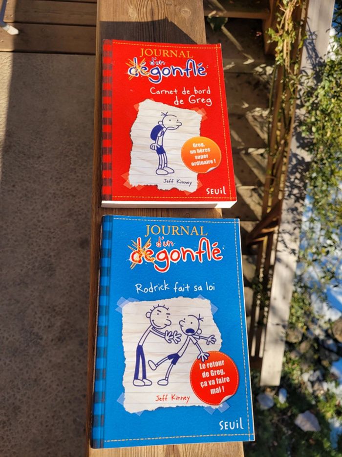 JOURNAL D'UN DÉGONFLÉ - Tome 1 : Carnet de bord de Greg - Tome 2 : Rodrick fait sa loi - Tome 3 : Trop c'est trop - Tome 4 : Ça fait suer! En très bon état mais quelques traces sur les tranches Mes autres livres enfants : #livreenfantmooglou #livreadomooglou