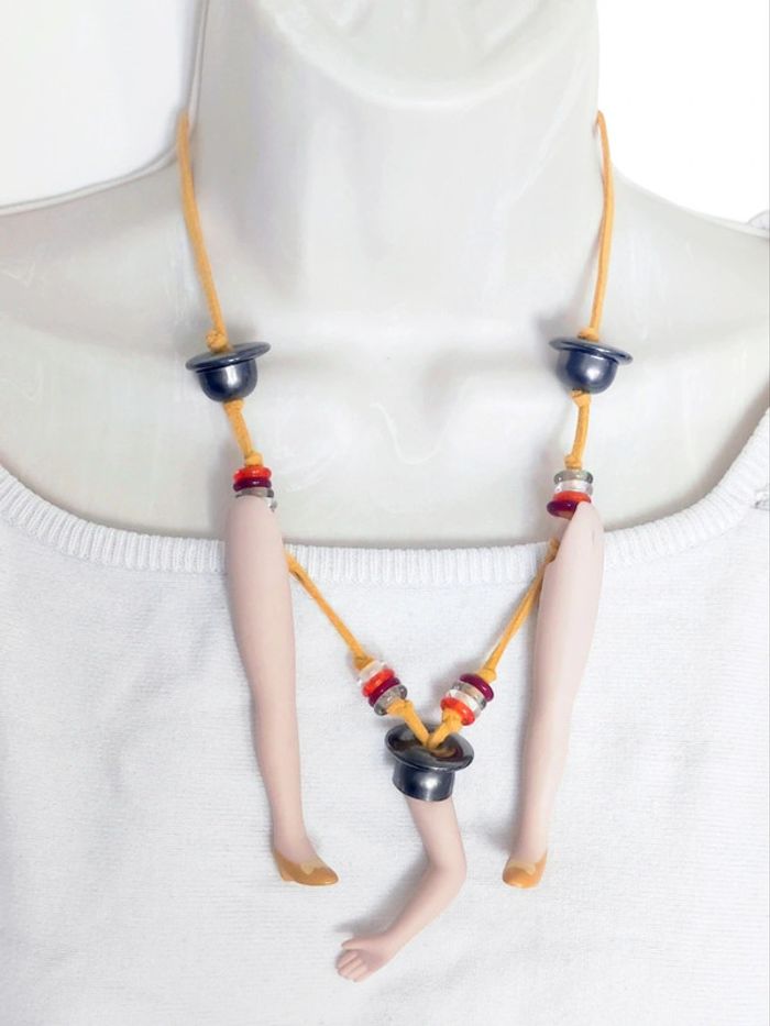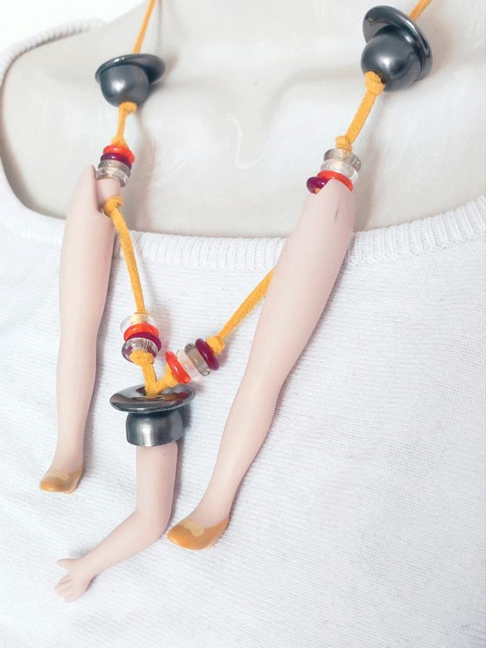 Collier creepy jambes bras porcelaine inox 🇫🇷 Fabrication Artisanale - photo numéro 1
