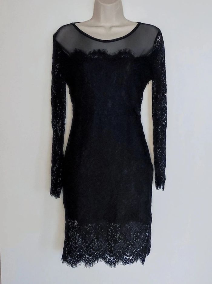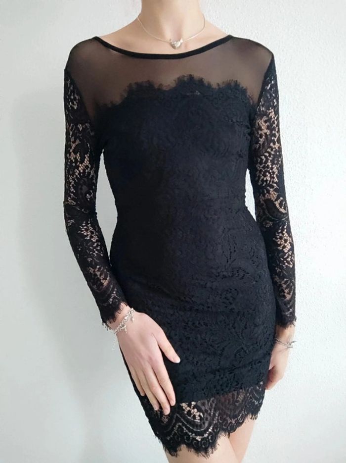 Schwarzes Minikleid, lange Ärmel, Spitzenblume