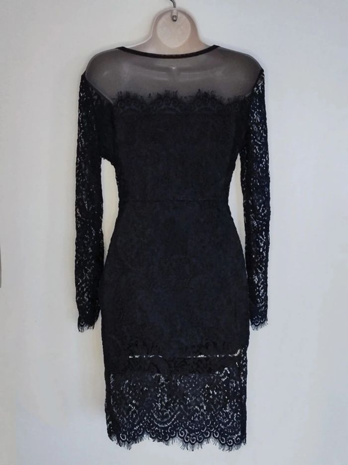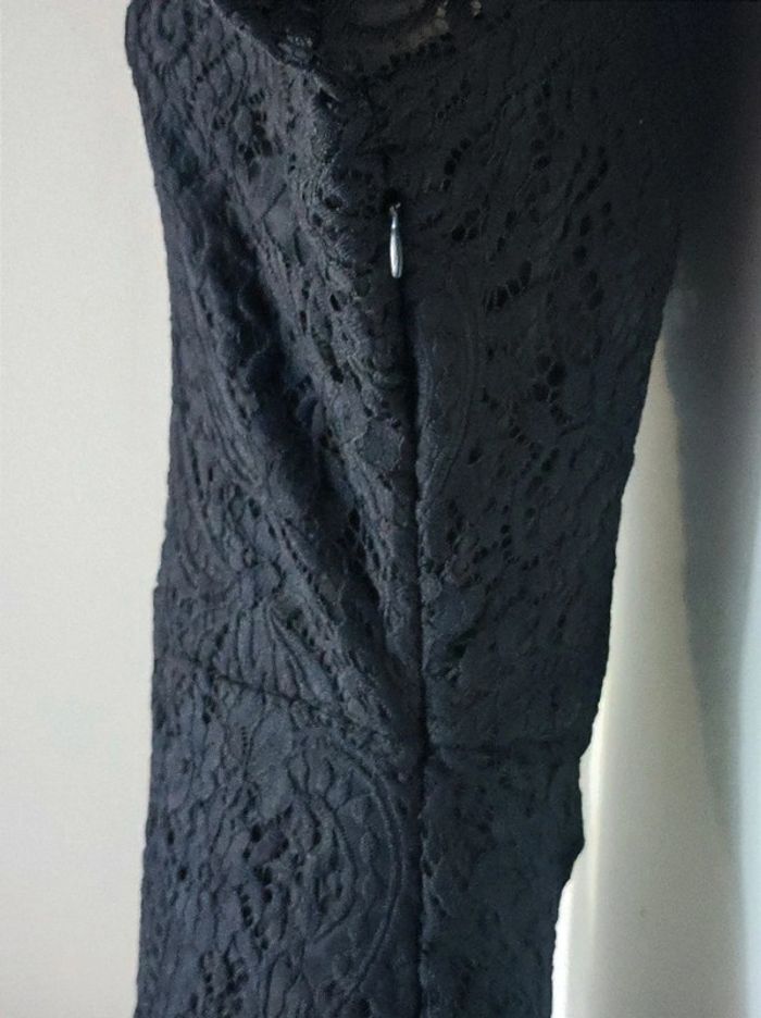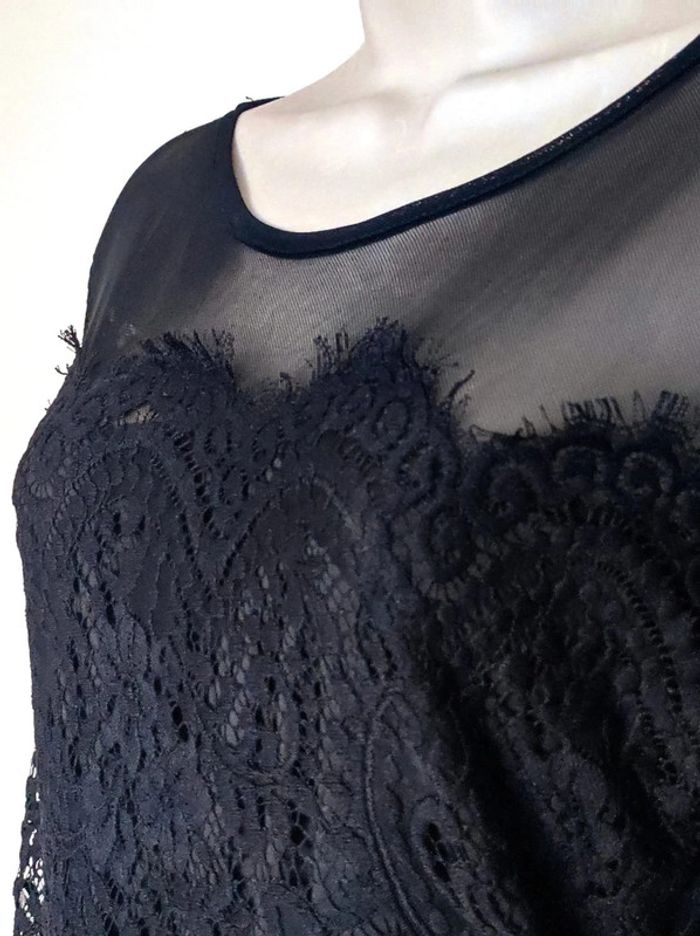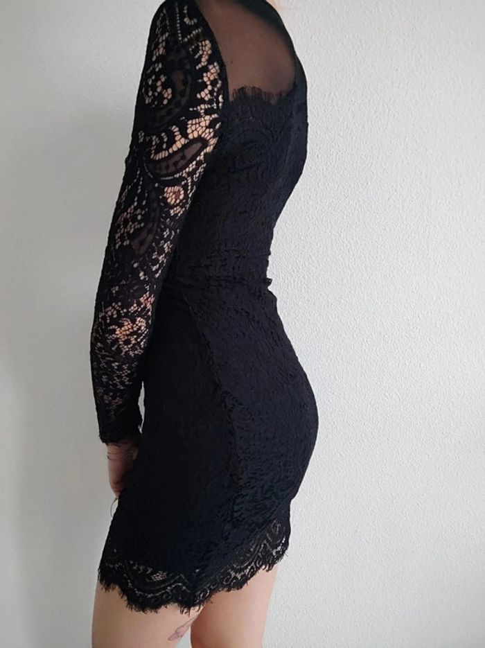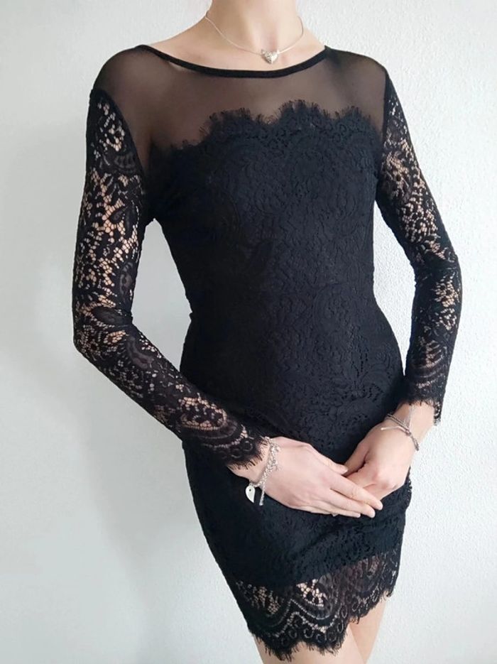 zwarte mini-jurk, lange mouwen, kanten bloem