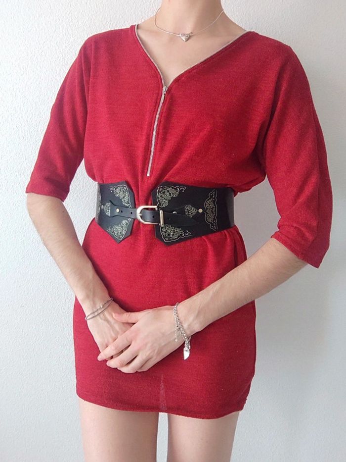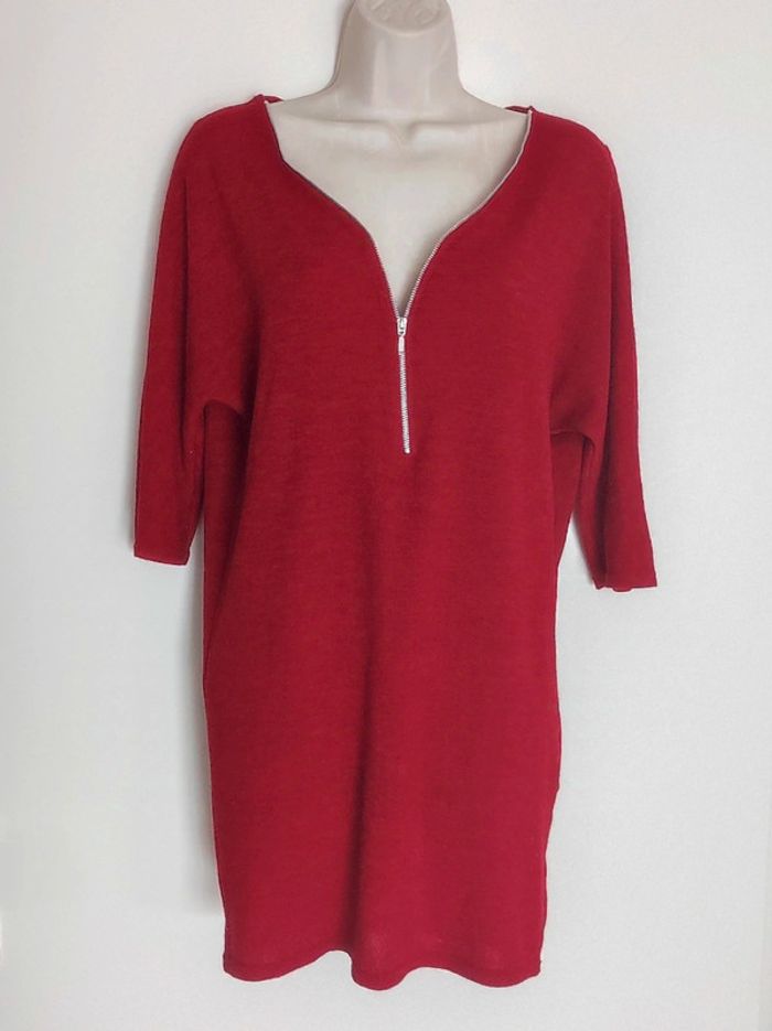 burgundy red sweater dress,three-quarter sleeve, zipper neckline, lace