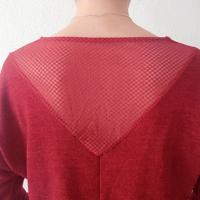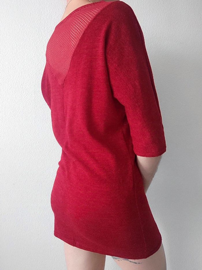 Burgunderrotes Pulloverkleid, Dreiviertelärmel, Reißverschlussausschnitt, Spitze