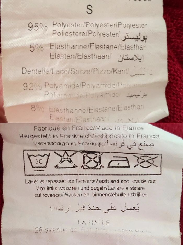 🧵 𝗖𝗼𝗺𝗽𝗼𝘀𝗶𝘁𝗶𝗼𝗻 : Tissu principal : 95% Polyester, 5% Élasthanne / Dentelle : 92% Polyamide, 8% Élasthanne