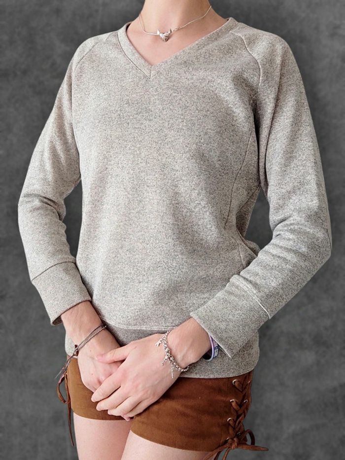 Sweat polaire col V beige gris chiné / Quechua - 36/S à 38/M