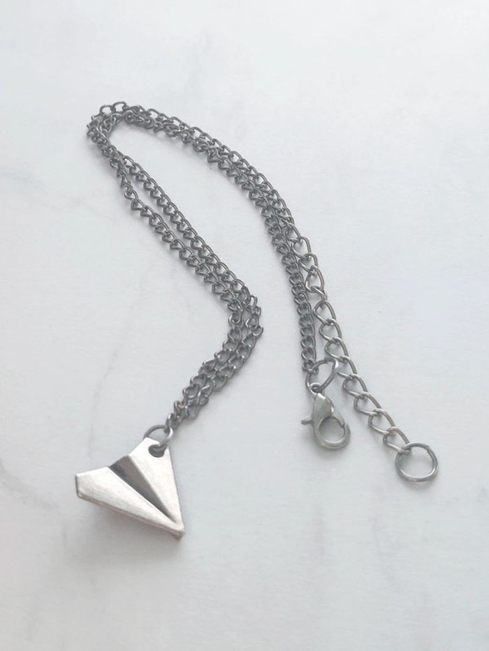 Collier pendentif avion origami argenté - 33 + 5cm - photo numéro 2