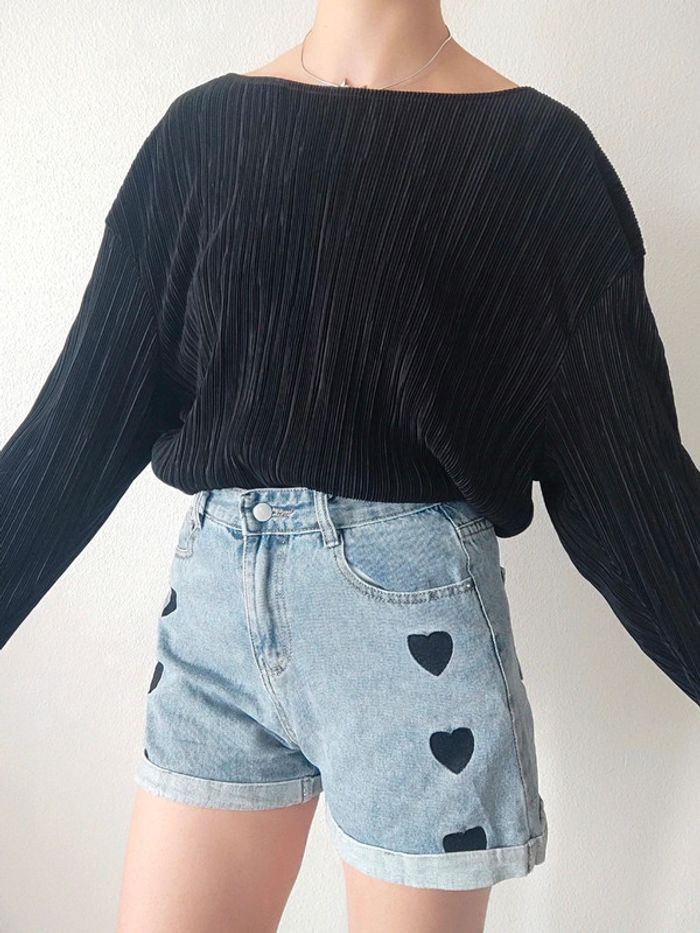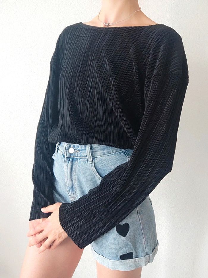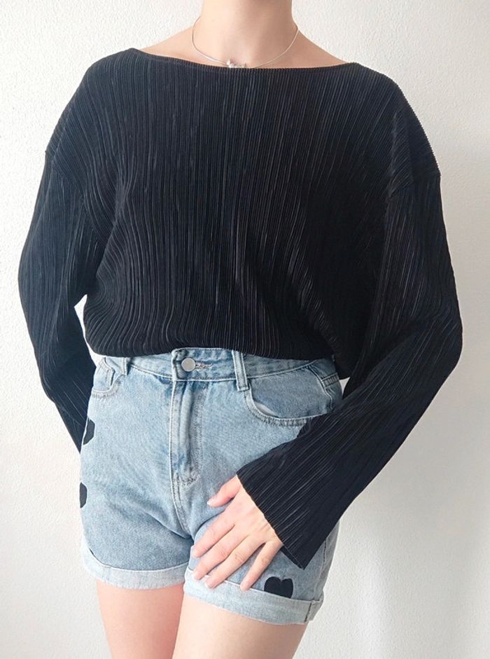 camiseta preta, blusa canelada, mangas compridas, esvoaçantes