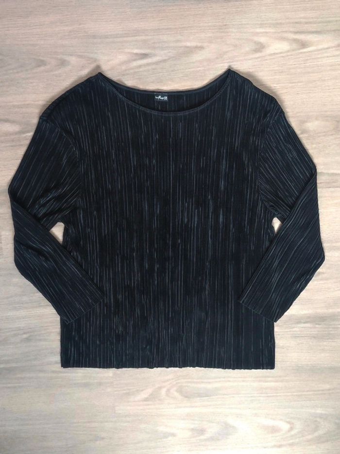 zwart t-shirt, geribbelde blouse, lange mouwen, vloeiend