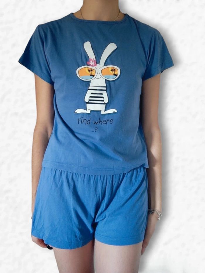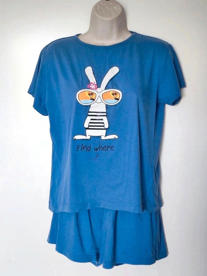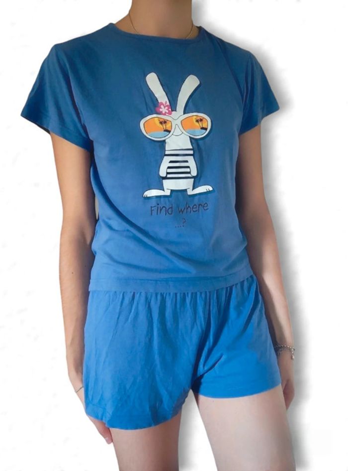 Ensemble pyjama tee-shirt short bleu lapin fun - 36/S à 40/L - photo numéro 1