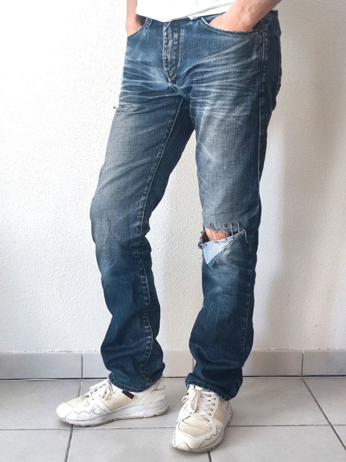 Pantalon jean straight troué bleu marine délavé / Célio - 40/L