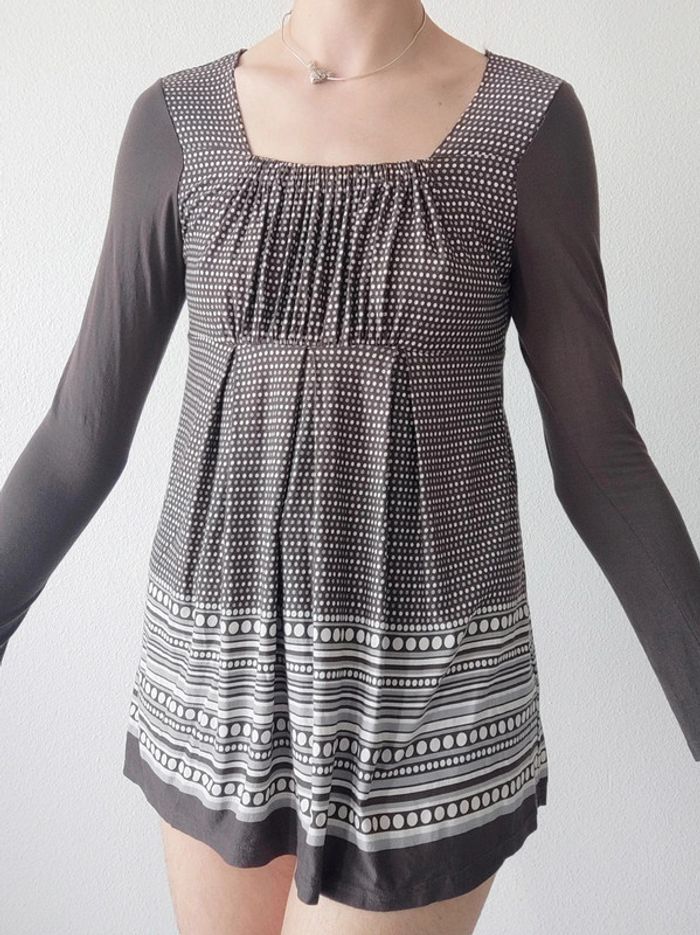 𝑭𝑹 𝑶𝒏𝒍𝒚 🇫🇷 𝗙𝗿𝗮𝗶𝘀 𝗱𝗲 𝗣𝗼𝗿𝘁 𝗮̀ 𝗽𝗿𝗶𝘅 𝗠𝗶𝗻𝗶 𝗽𝗼𝘀𝘀𝗶𝗯𝗹𝗲 📦 (𝘴𝘶𝘳 𝘒𝘪𝘢𝘣𝘪𝘚𝘦𝘤𝘰𝘯𝘥𝘦𝘔𝘢𝘪𝘯 / 𝘷𝘪𝘢 𝘔𝘰𝘯𝘥𝘪𝘢𝘭 𝘙𝘦𝘭𝘢𝘺) ➸ 1€99 pour 1 article ➸ 0€99 pour un lot  ⁠෴﹏෴﹏෴﹏෴﹏෴﹏෴ 💸 ℝ𝕖́𝕕𝕦𝕔𝕥𝕚𝕠𝕟𝕤 𝕤𝕦𝕣 𝕝𝕖𝕤 𝕃𝕠𝕥𝕤 💸 🌱 𝟐 𝐚𝐫𝐭𝐢𝐜𝐥𝐞𝐬 : -5% ☘️ 𝟑 𝐚𝐫𝐭𝐢𝐜𝐥𝐞𝐬 : -10% 🍀 𝟓 𝐚𝐫𝐭𝐢𝐜𝐥𝐞𝐬 : -15% 🌿 𝟏𝟎 𝐚𝐫𝐭𝐢𝐜𝐥𝐞𝐬 : Réduction supplémentaire  ⁠෴﹏෴﹏෴﹏෴﹏෴﹏෴ 🗂️ 𝗖𝗮𝘁𝗲́𝗴𝗼𝗿𝗶𝗲 : #flocofemme38 📏 𝗧𝗮𝗶𝗹𝗹𝗲 : Taille 2 | Correspond à du 38/M 🏷️ 𝗠𝗮𝗿𝗾𝘂𝗲 : Non mentionnée 🎨 𝗖𝗼𝗹𝗼𝗿𝗶𝘀 : Marron, taupe, gris, blanc 🏁 𝗧𝗵𝗲̀𝗺𝗲 / 𝗠𝗼𝘁𝗶𝗳 : Pois, rayé, rayures 🧵 𝗖𝗼𝗺𝗽𝗼𝘀𝗶𝘁𝗶𝗼𝗻 : 95% Viscose, 5% Élasthanne 🌍 𝗣𝗮𝘆𝘀 𝗱𝗲 𝗙𝗮𝗯𝗿𝗶𝗰𝗮𝘁𝗶𝗼𝗻 : France 🇨🇵 ❌ 𝗗𝗲́𝗳𝗮𝘂𝘁(𝘀) : Un léger accro dans une manche (peu visible une fois porté) 📜 𝗗𝗲́𝘁𝗮𝗶𝗹𝘀 𝘀𝘂𝗽𝗽𝗹𝗲́𝗺𝗲𝗻𝘁𝗮𝗶𝗿𝗲𝘀 : Tee-shirt long, blouse tunique, col carré froncé. Manches longues. Cintré sous la poitrine. Bohème hippie indie vintage cottagecore prairie ethnique y2k 2000s ෴﹏෴﹏෴﹏෴﹏෴﹏෴ 🌈 𝑴𝒆𝒔 𝒎𝒆𝒏𝒔𝒖𝒓𝒂𝒕𝒊𝒐𝒏𝒔 : - 𝟷𝚖𝟾𝟸 - 𝙷𝚊𝚗𝚌𝚑𝚎 ≈𝟾𝟻𝚌𝚖 - 𝚃𝚊𝚒𝚕𝚕𝚎 ≈𝟽𝟺𝚌𝚖 - 𝙱𝚘𝚗𝚗𝚎𝚝 𝙰 ෴﹏෴﹏෴﹏෴﹏෴﹏෴ 🛍️ 𝐷𝑟𝑒𝑠𝑠𝑖𝑛𝑔 𝑑𝑒 : #delnathalie