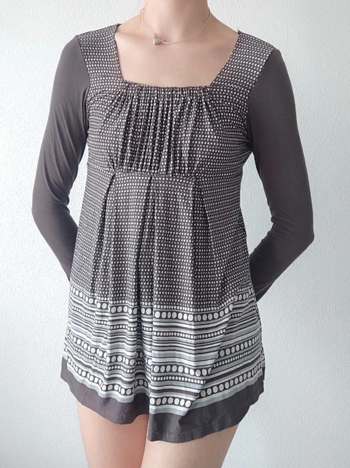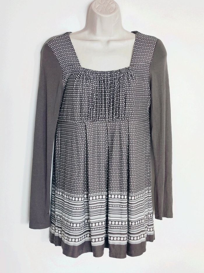 Blouse taupe blanc pois rayures 🇨🇵 38/M - photo numéro 2