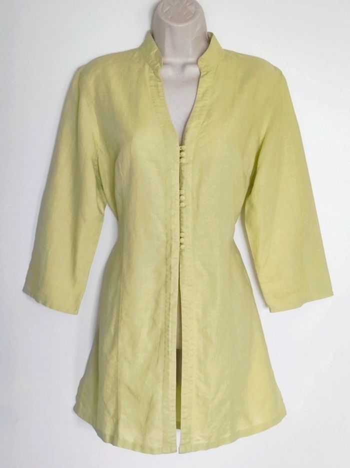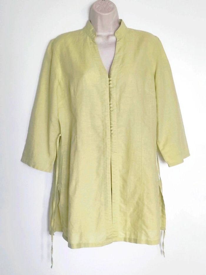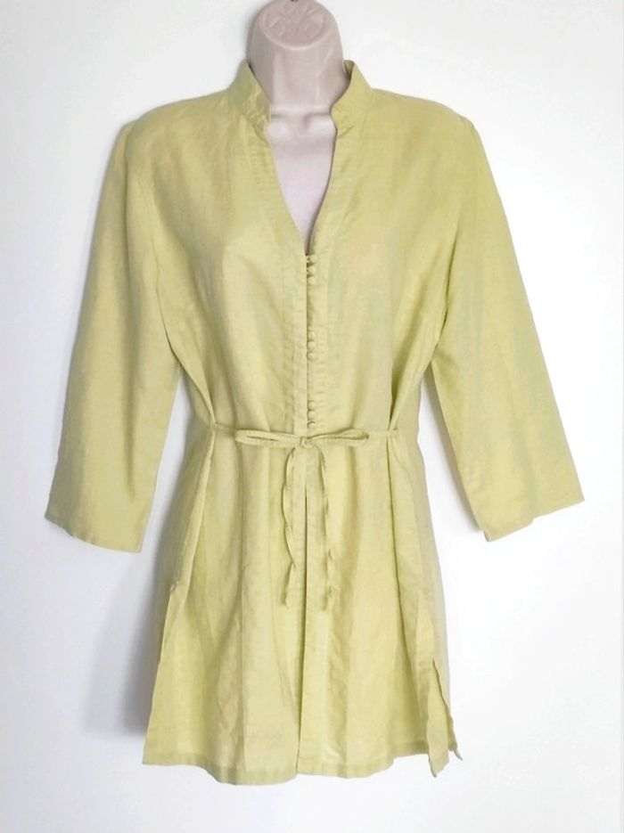 Tunique en lin vert anis 3/4  / Camaïeu - 40/L à 42/XL