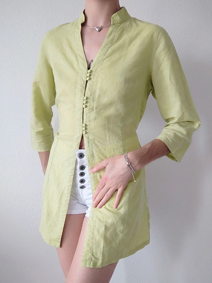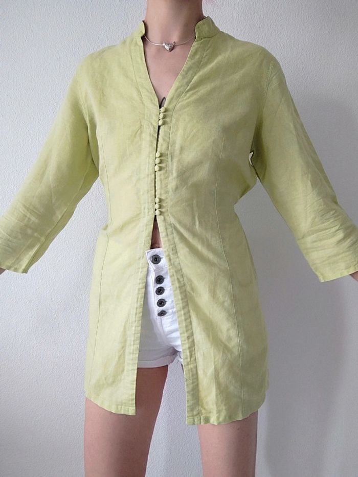 Tunique en lin vert anis 3/4  / Camaïeu - 40/L à 42/XL - photo numéro 8