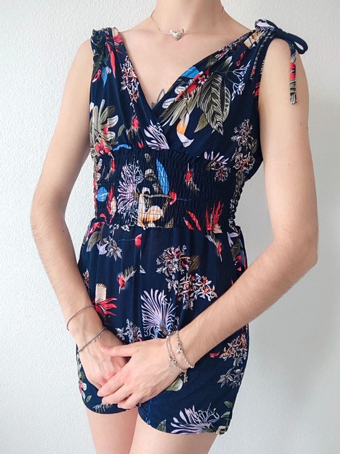 Combi short bleu marine fleur exotique multicolore Col V / S&Y - 36/S à 40/L - photo numéro 12