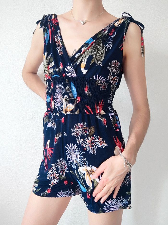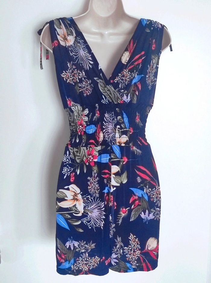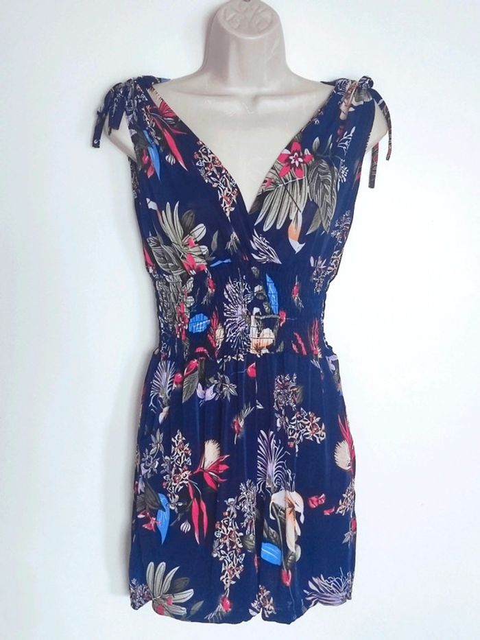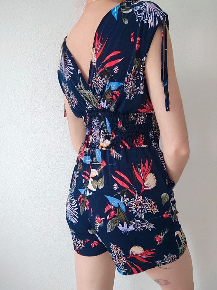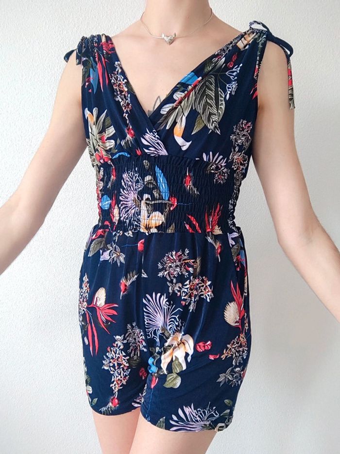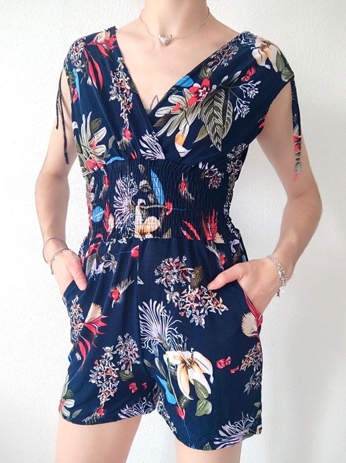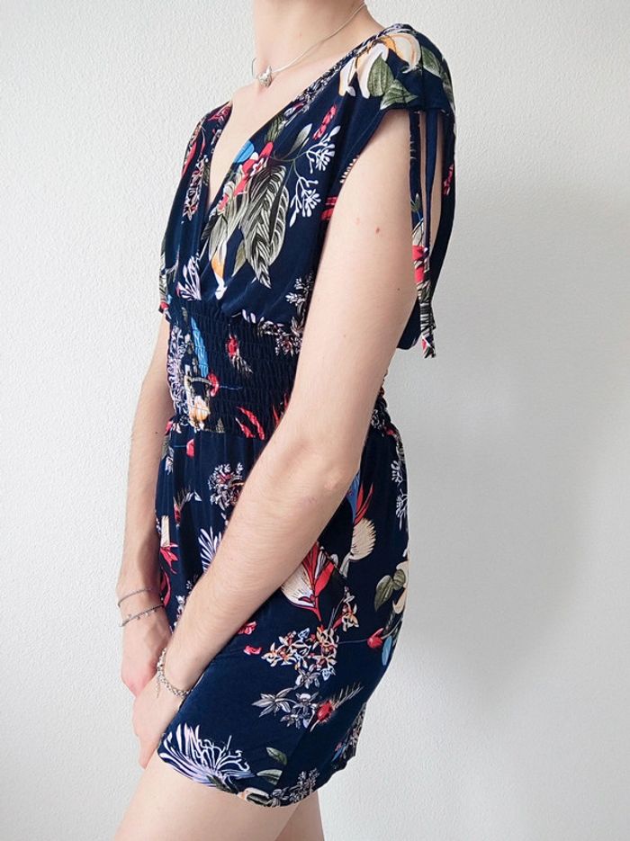 Combi short bleu marine fleur exotique multicolore Col V / S&Y - 36/S à 40/L - photo numéro 1