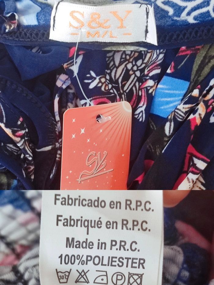Combi short bleu marine fleur exotique multicolore Col V / S&Y - 36/S à 40/L - photo numéro 15