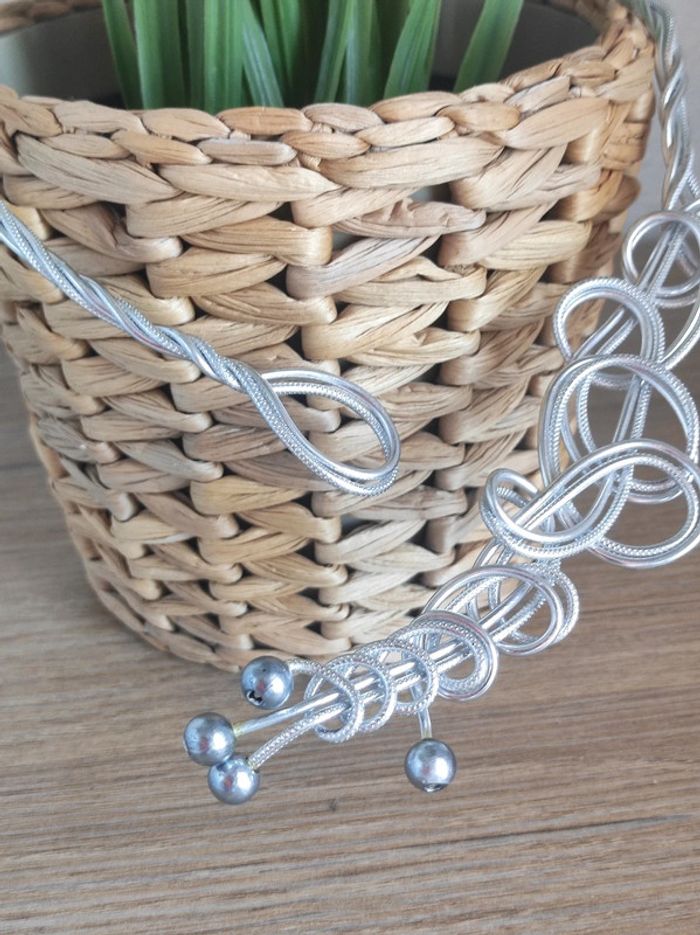 Collier spirale aluminium perle argent - photo numéro 4