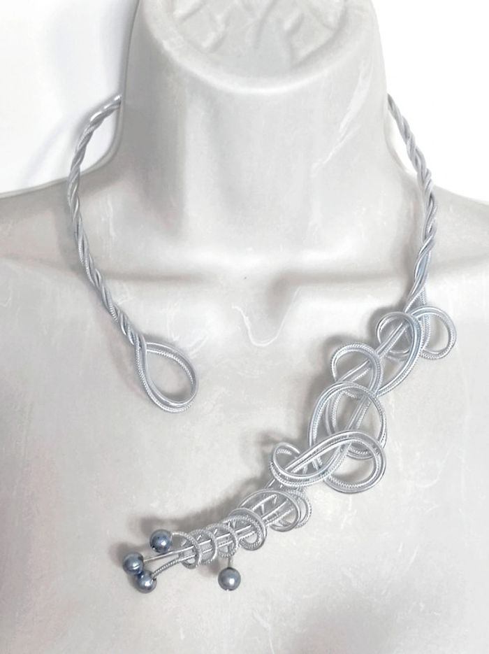 Collier spirale aluminium perle argent - photo numéro 3