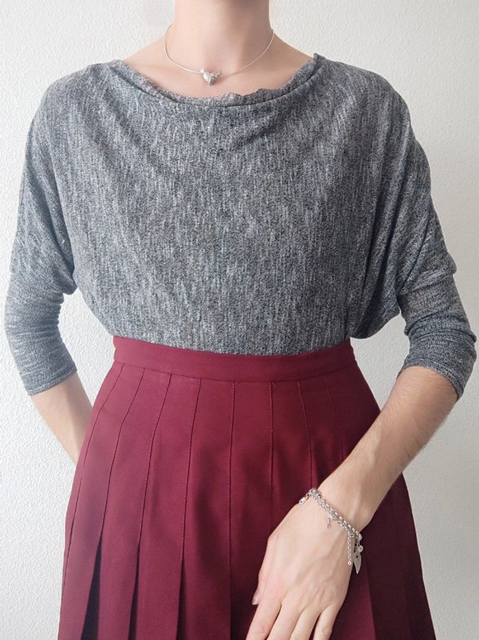 Pull fin 3/4 gris chiné col cascade - 36/S à 40/M - photo numéro 1