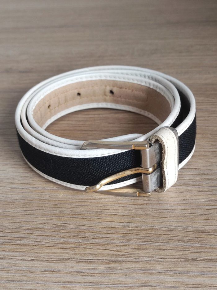 Ceinture noir bordure blanc cuir Vintage - 73 à 83 cm - photo numéro 2