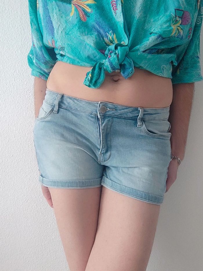 Mini short en jean bleu clair délavé / Cache-Cache - 38/M à 40/L