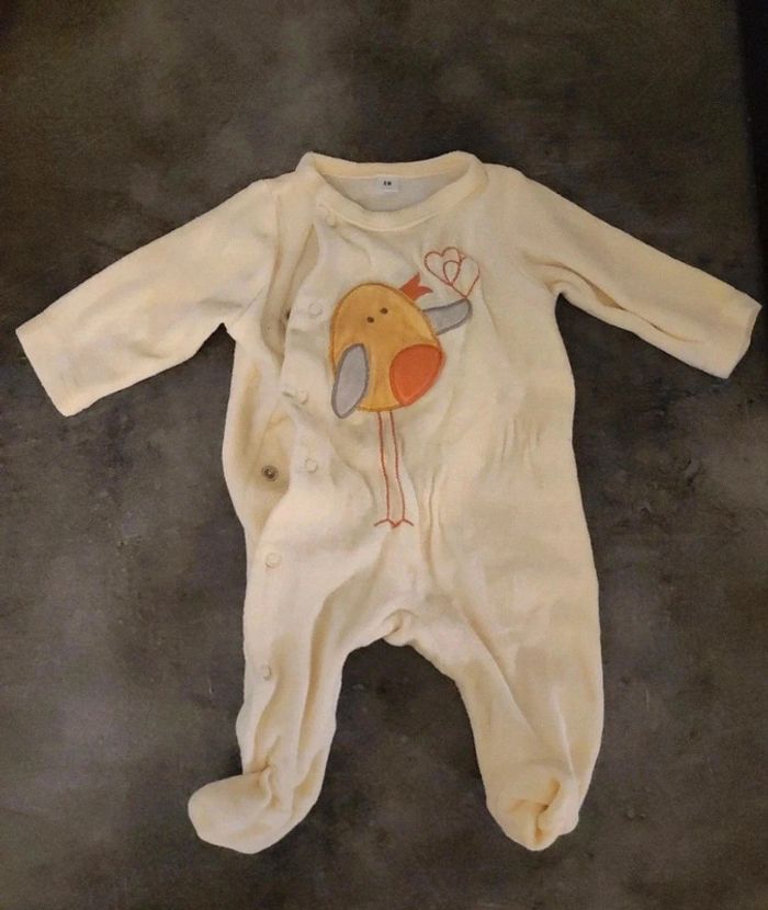 Pyjama combinaison grenouillère oiseau jaune pastel - Naissance / 0 mois