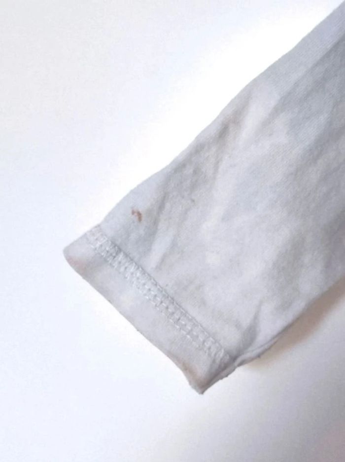 Quelques petites tâches sur les manches manches longues Écriture vert jaune Petit chien #flocobebe #carolebru