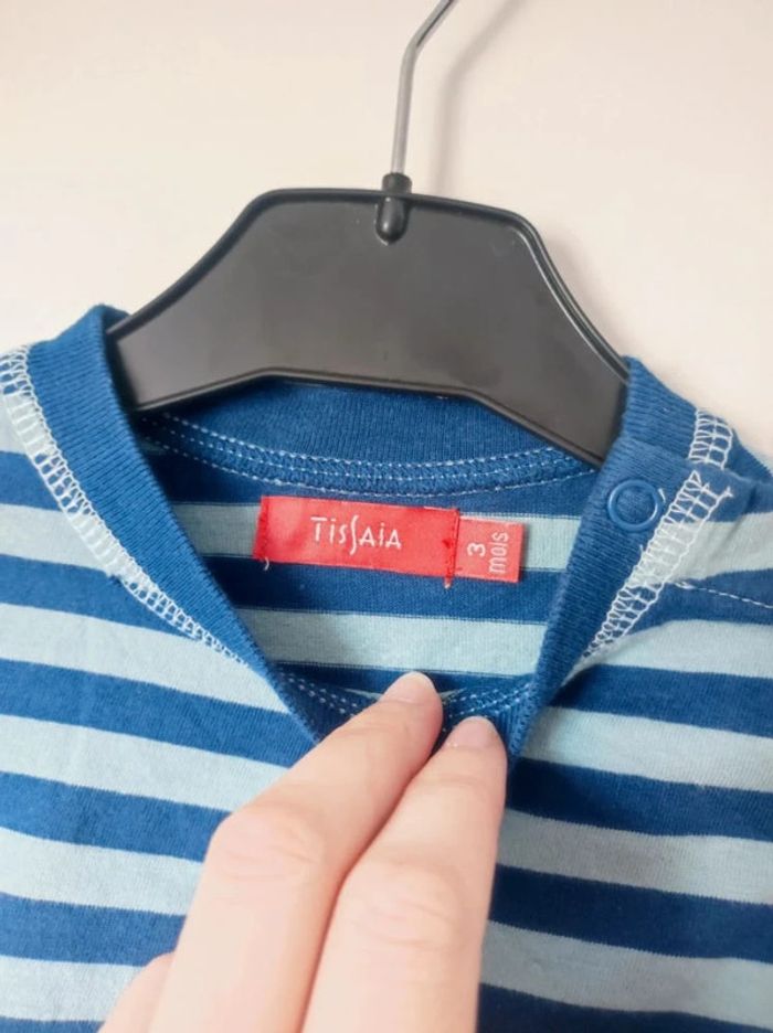 💸 Réduction sur les Lots 💸 🌱 2 articles : -5% ☘️ 3 articles : -10% 🍀 5 articles : - 15% 🌿 10 articles : Réduction supplémentaire ⁠෴﹏෴﹏෴﹏෴﹏ ⁠෴﹏෴ 🗂️ Catégorie : #flocobebe 📏 Taille : 3 mois 🏷️ Marque : Tissaia 🎨 Coloris : Bleu turquoise, bleu marine 🏁 Thème / Motif : Rayures, rayé 🧵 Composition : 100% Coton 🌍 Pays de Fabrication : Non mentionné ❌ Défaut(s) : Aucun 📜 Détails supplémentaires : Manches longues. Boutons pressions sur le côté. Esprit marinière ෴﹏෴﹏෴﹏෴﹏ ⁠෴﹏෴ 🛍️ Articles Client : #carolebru