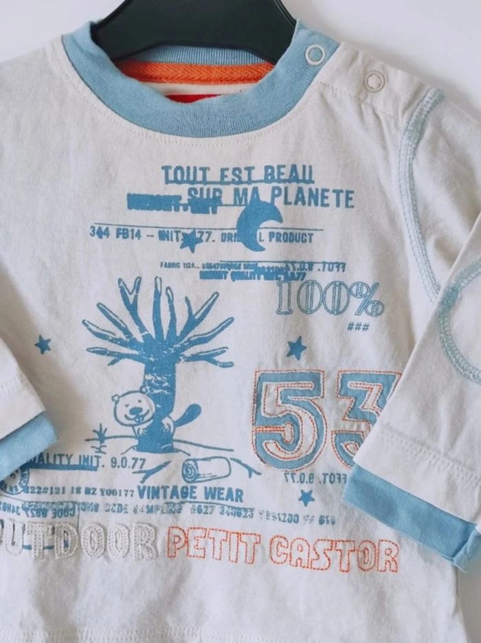 💸 Réduction sur les Lots 💸 🌱 2 articles : -5% ☘️ 3 articles : -10% 🍀 5 articles : - 15% 🌿 10 articles : Réduction supplémentaire  ⁠෴﹏෴﹏෴﹏෴﹏ ⁠෴﹏෴ 🗂️ Catégorie : #flocobebe 📏 Taille : 6 mois 🏷️ Marque : Tissaia 🎨 Coloris : Blanc crème, bleu clair, orange 🏁 Thème / Motif : Uni, arbre, castor, Vintage Wear, Tout est beau sur ma Planète 🧵 Composition : 100% Coton 🌍 Pays de Fabrication : ❌ Défaut(s) : Aucun 📜 Détails supplémentaires : Manches longues. Renfort sur les coudes. 2 boutons au niveau du col. ෴﹏෴﹏෴﹏෴﹏ ⁠෴﹏෴ 🛍️ Articles Client : #carolebru