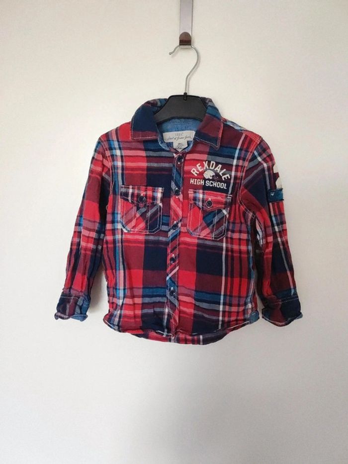 Chemise manche longue carreaux bleu marine rouge - photo numéro 1